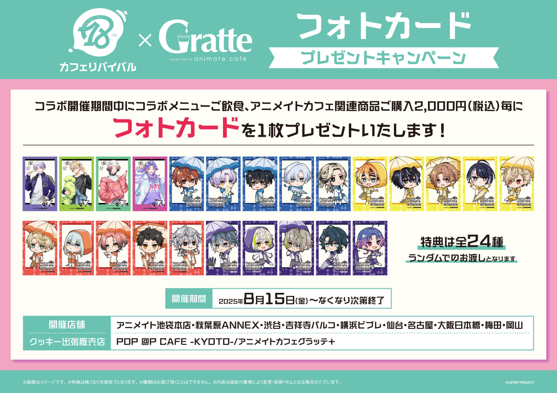 ※特典を複数お渡しの際、同じ絵柄が出る場合がございますのであらかじめご了承ください。