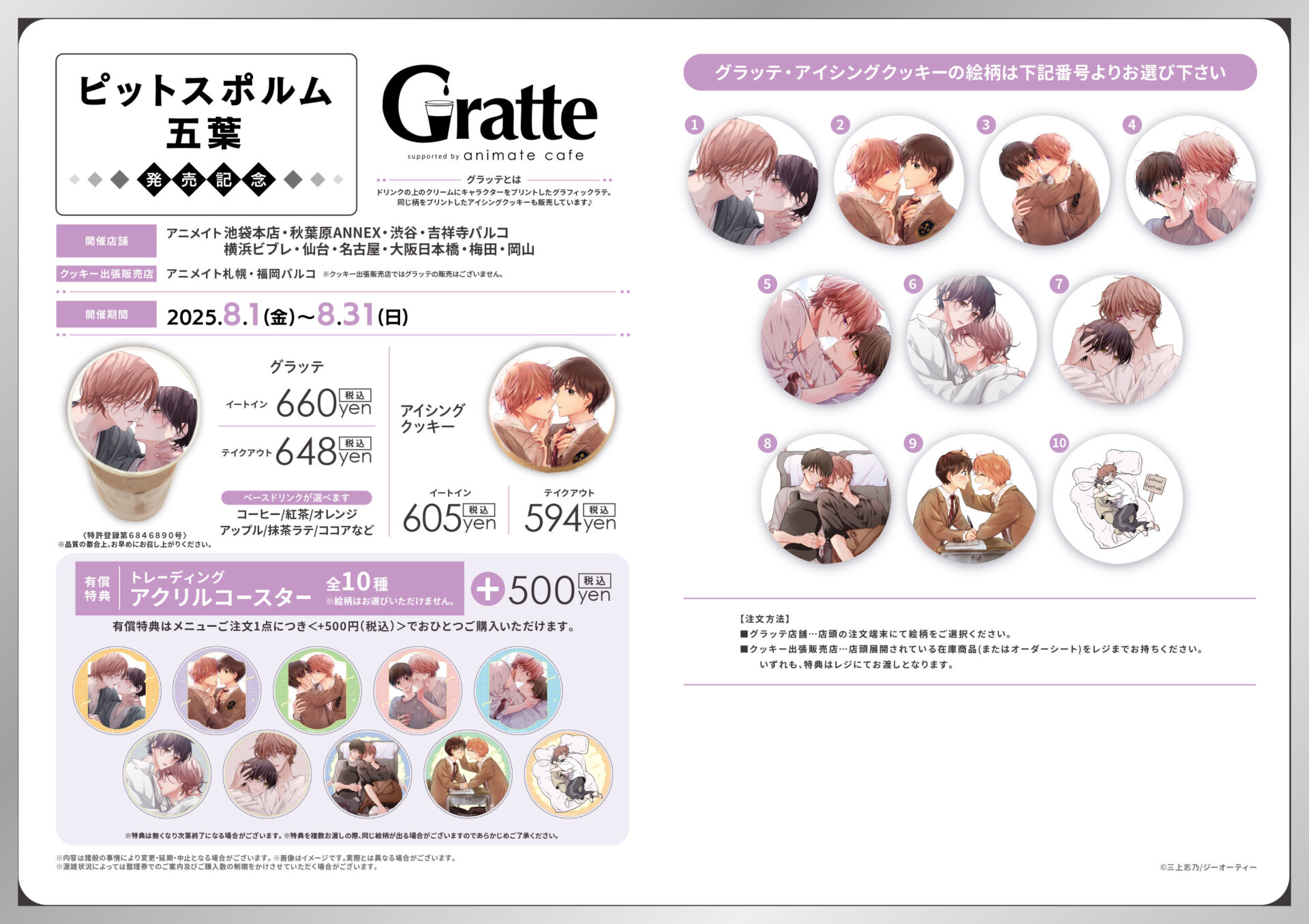 ラテ・クッキー・アイス 販売店舗 アニメイト渋谷、吉祥寺パルコ、仙台、梅田