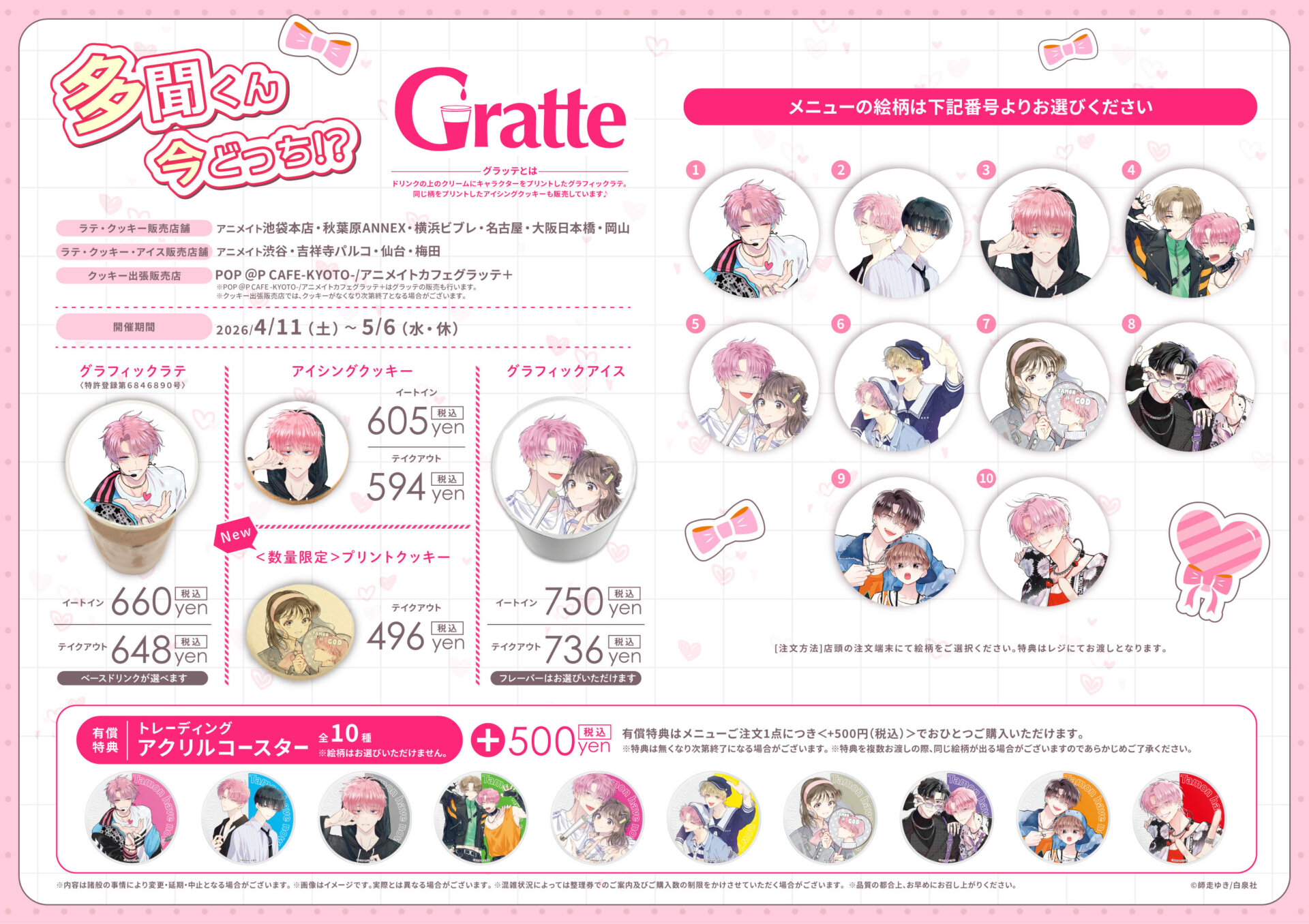 | ラテ・クッキー・アイス 販売店舗 | アニメイト渋谷、吉祥寺パルコ、仙台、梅田 |