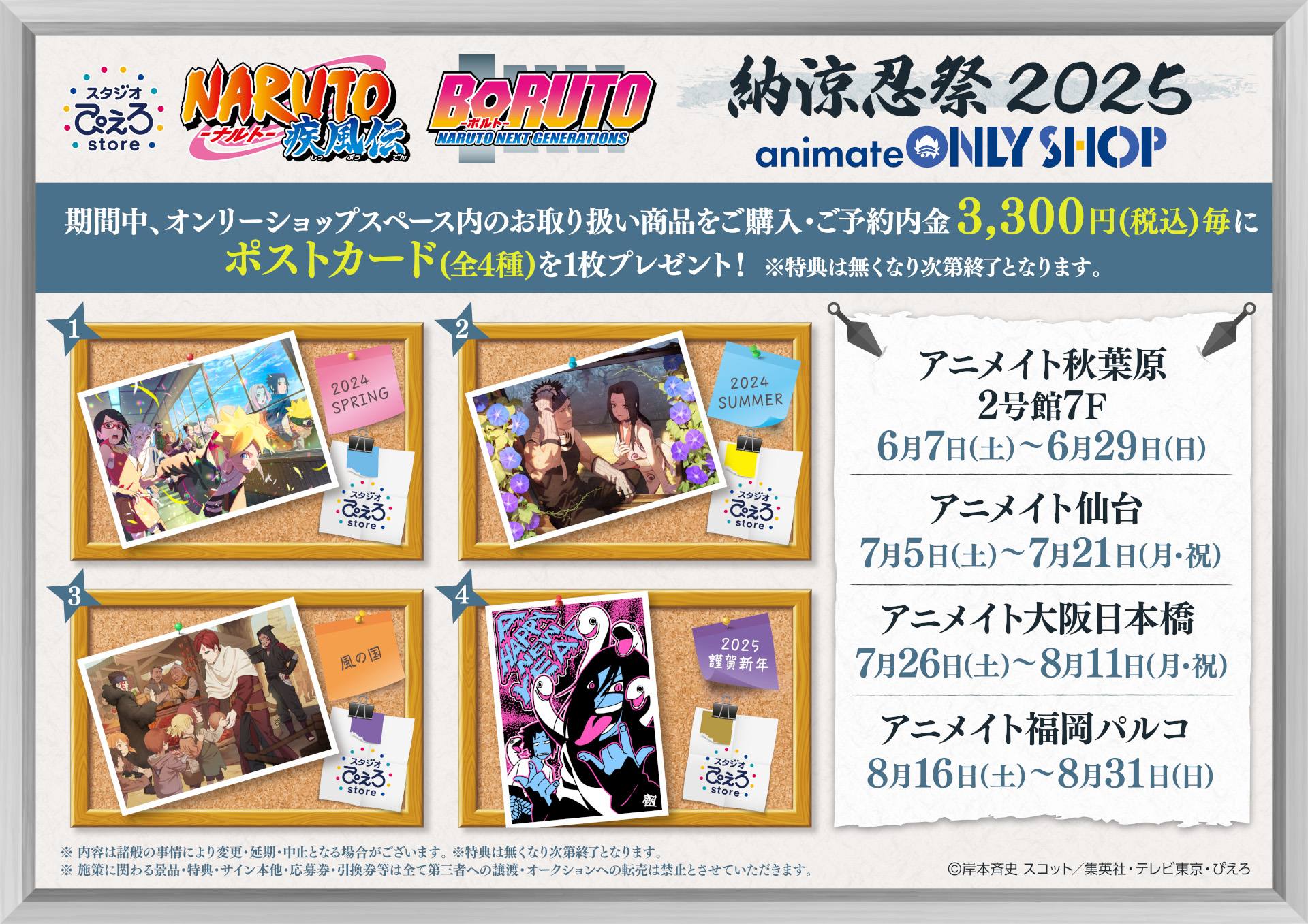 期間中、オンリーショップスペース内のお取り扱い商品をご購入・ご予約内金3,300円(税込)毎にポストカード(全4種)を1枚プレゼント!