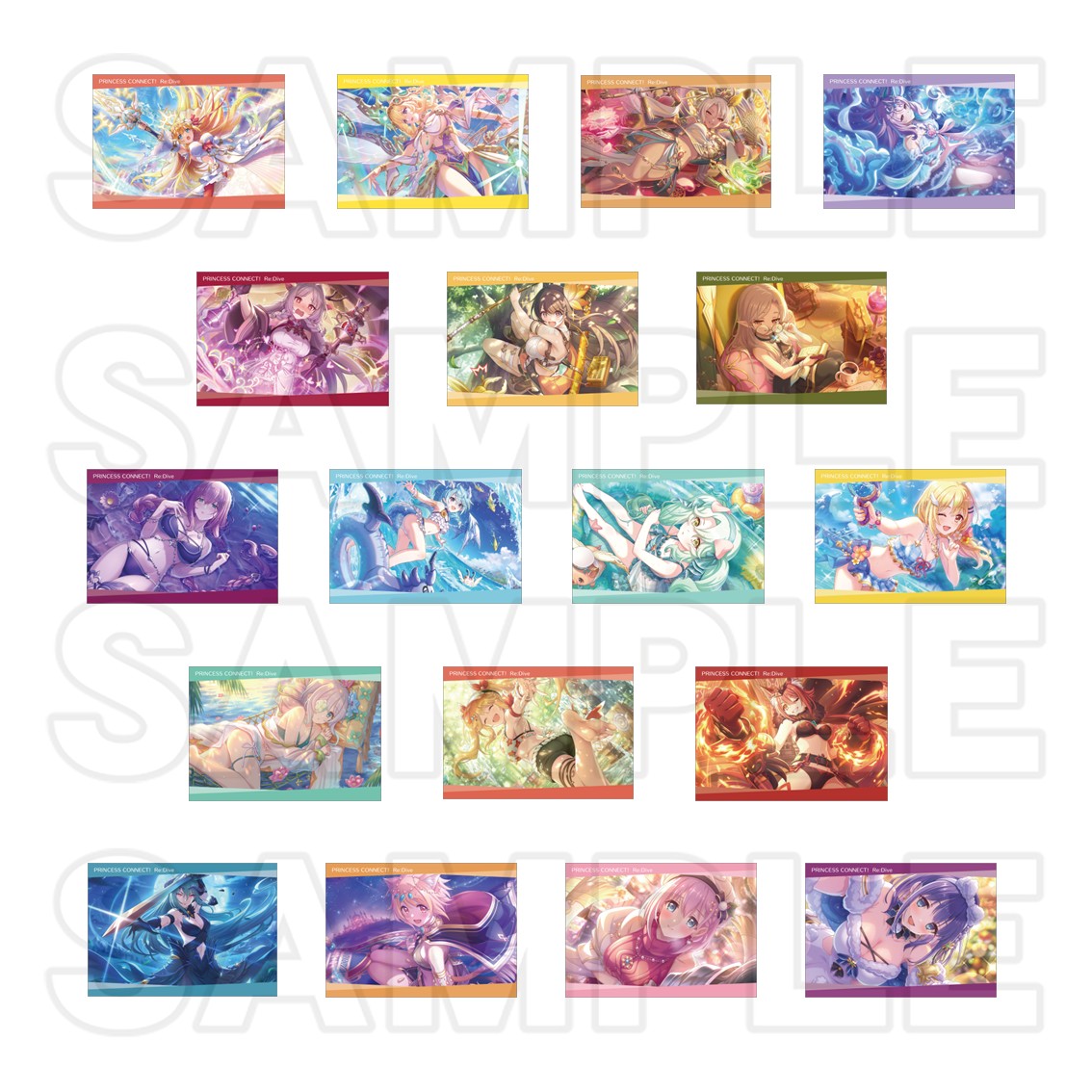 期間中、開催店舗にて『プリンセスコネクト!Re:Dive』関連のキャラクターグッズをご購入・ご予約内金1,100円(税込)毎に イラストカード(全18種) を1枚プレゼント!