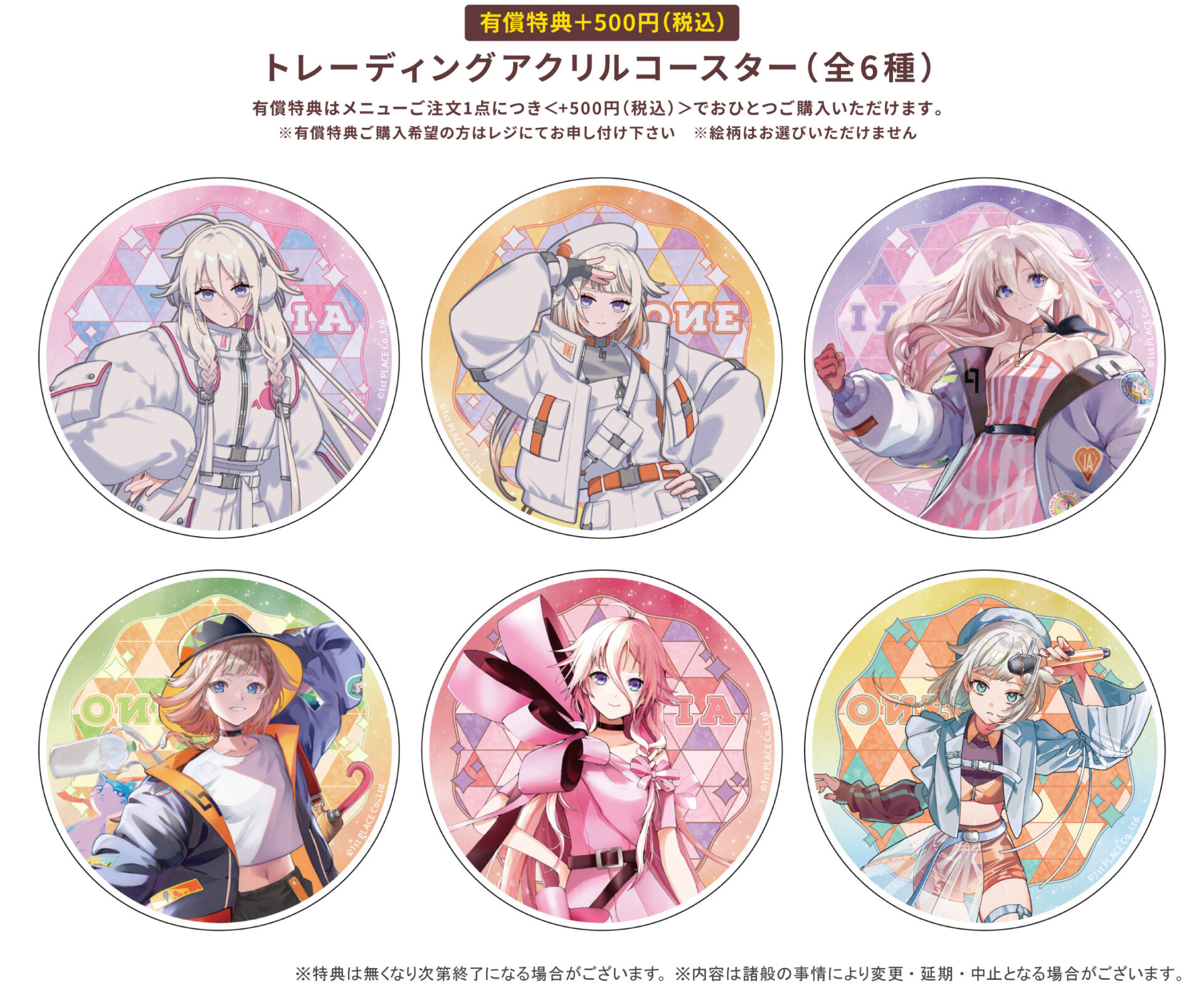 有償特典はメニューご注文1点につき<+500円(税込)>でおひとつご購入いただけます。