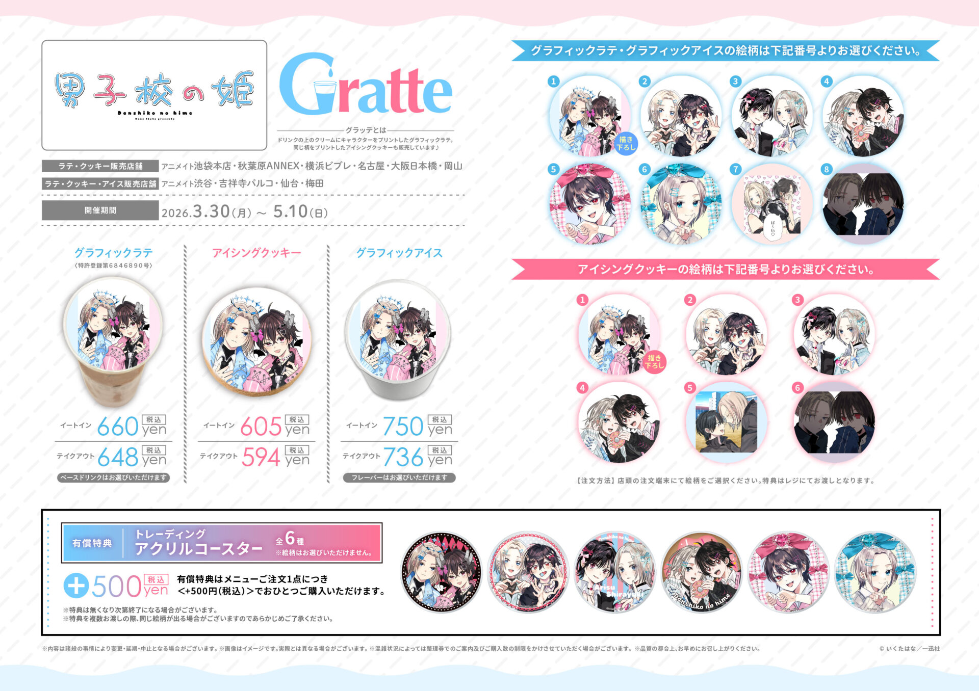 ラテ・クッキー・アイス 販売店舗 アニメイト渋谷、吉祥寺パルコ、仙台、梅田