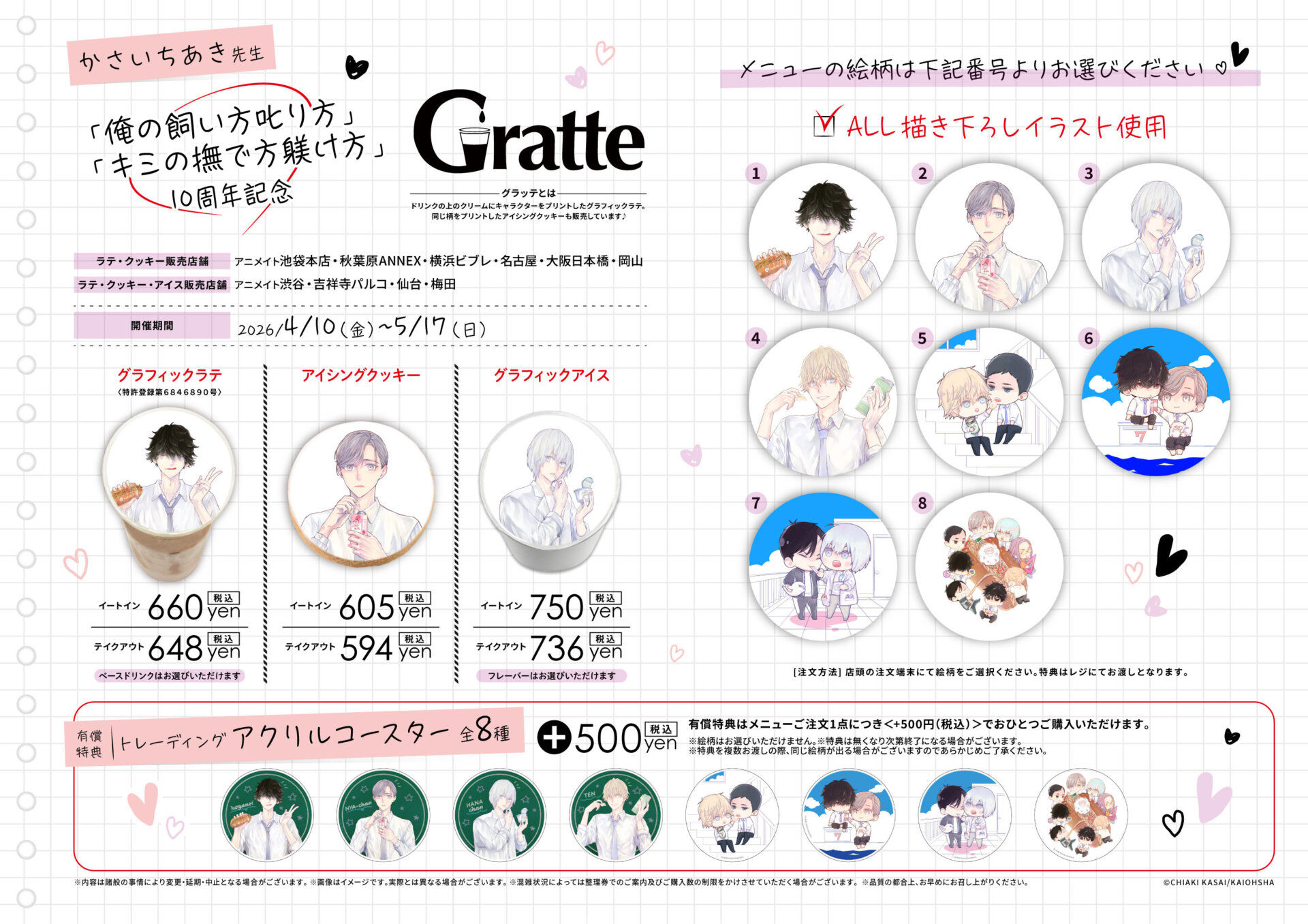 ラテ・クッキー・アイス 販売店舗 アニメイト渋谷、吉祥寺パルコ、仙台、梅田