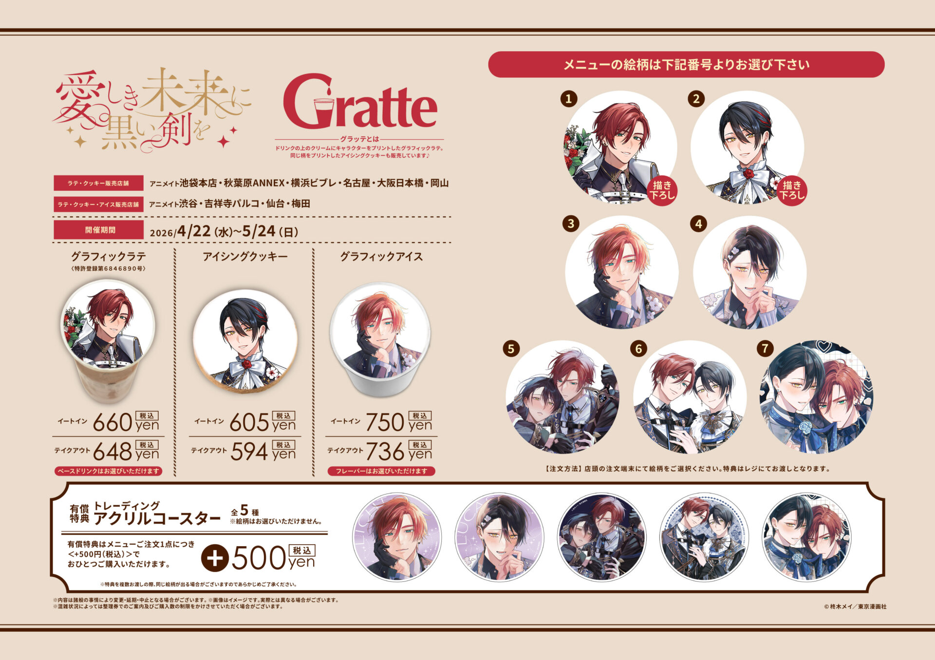 ラテ・クッキー 販売店舗 アニメイト池袋本店、秋葉原ANNEX、横浜ビブレ、名古屋、大阪日本橋、岡山