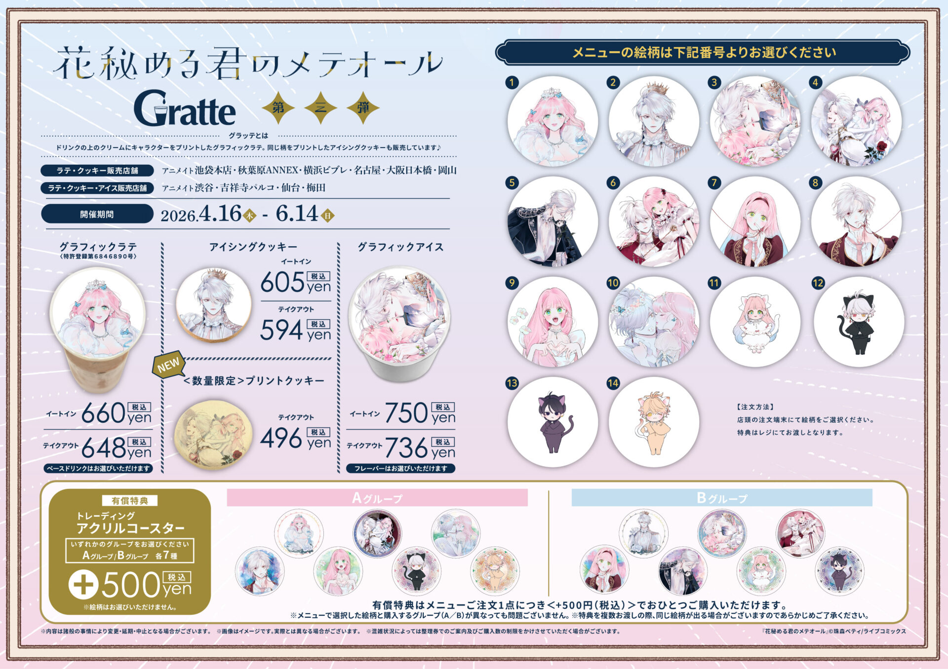 | ラテ・クッキー・アイス 販売店舗 | アニメイト渋谷、吉祥寺パルコ、仙台、梅田 |