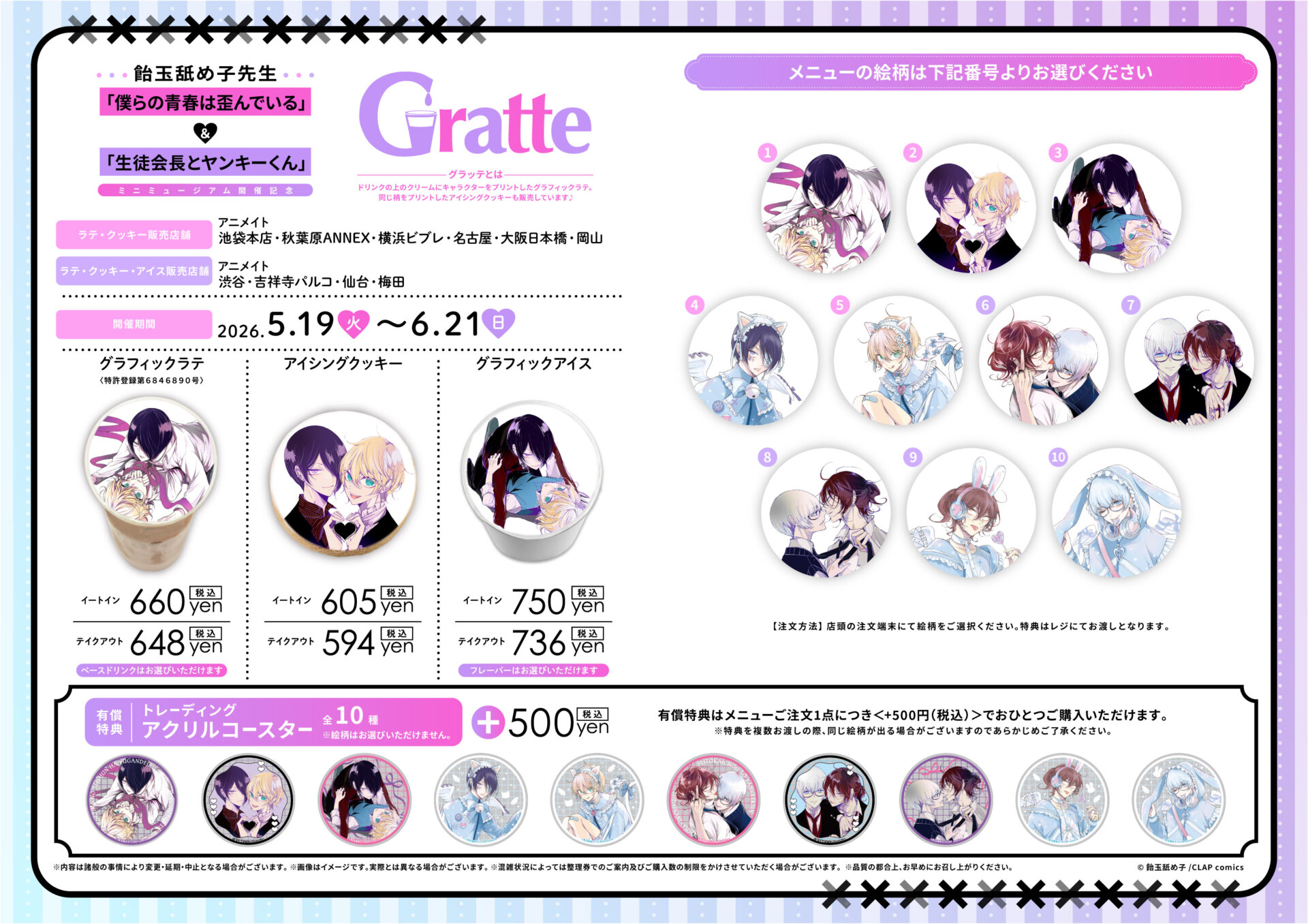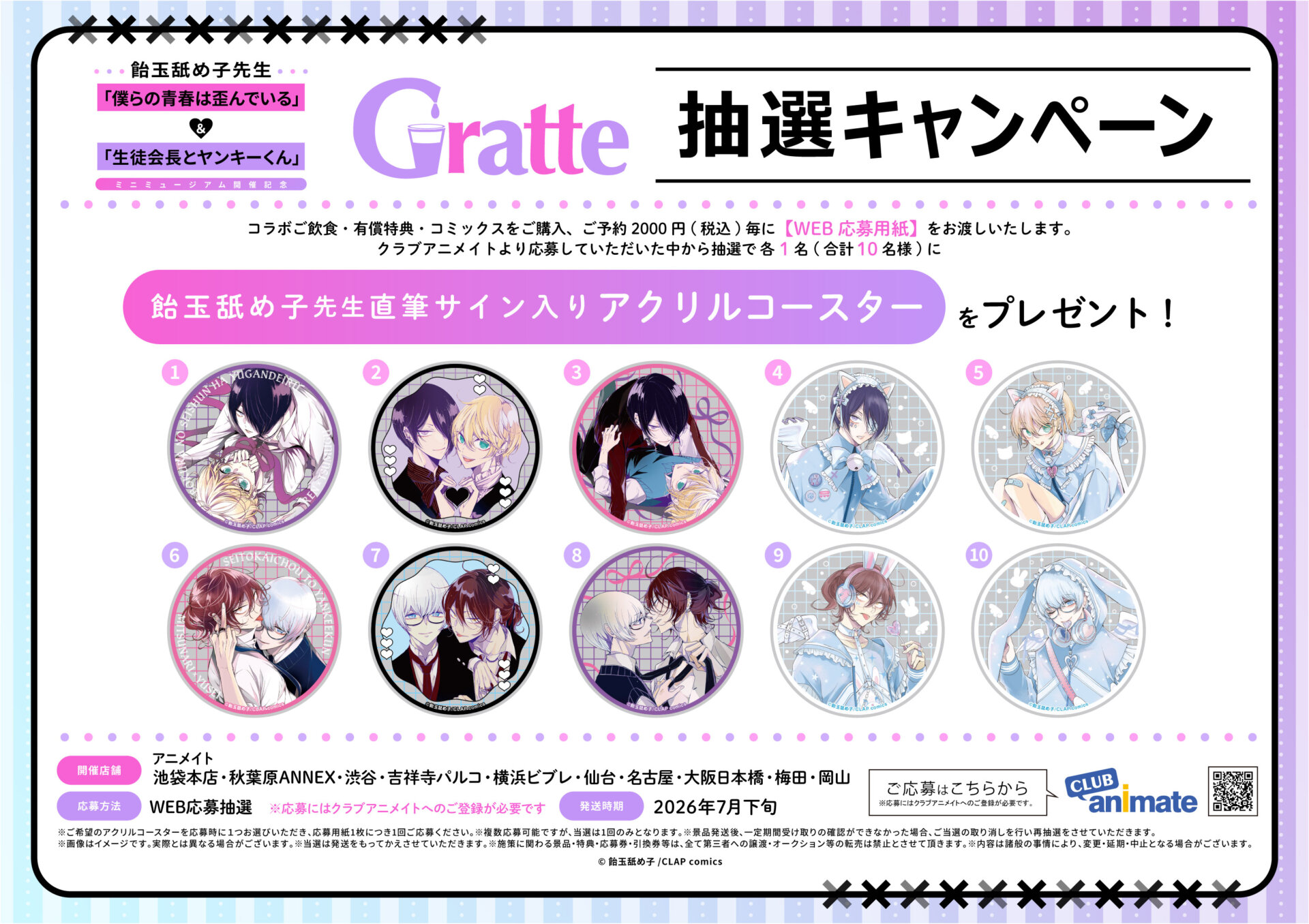 飴玉舐め子先生「僕らの青春は歪んでいる」&「生徒会長とヤンキーくん」ミニミュージアム開催記念Gratte抽選キャンペーン
