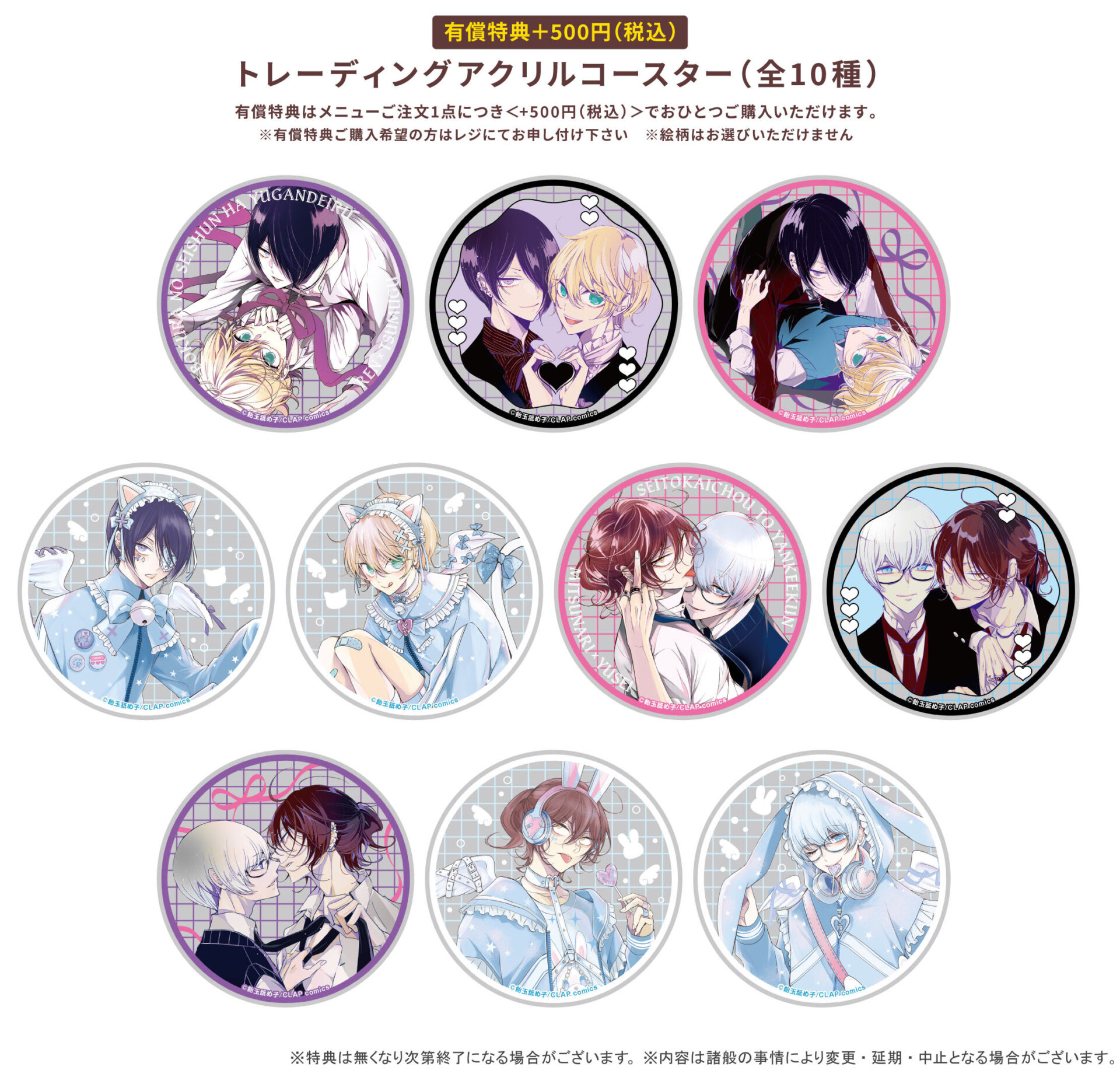 ※特典を複数お渡しの際、同じ絵柄が出る場合がございますのであらかじめご了承ください。