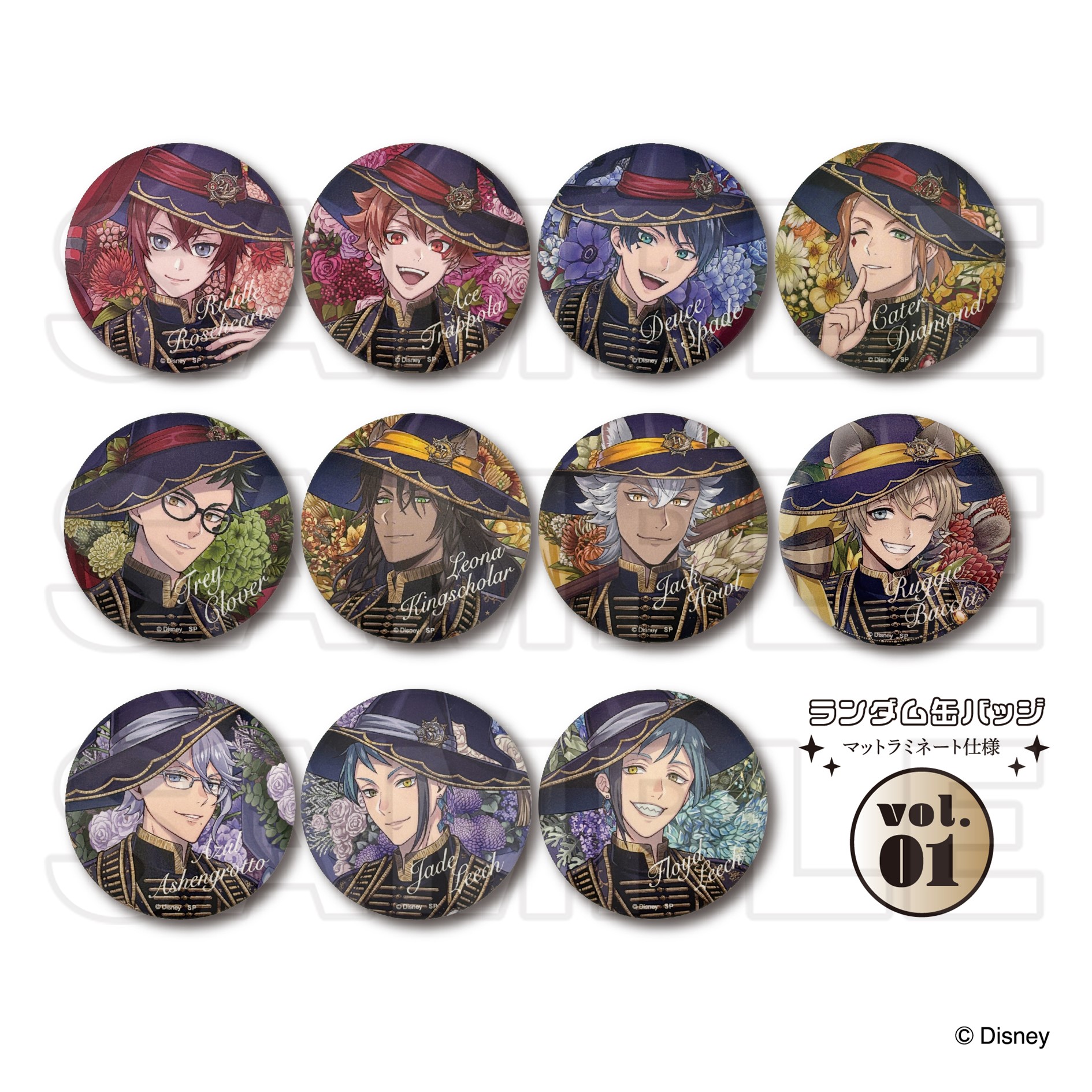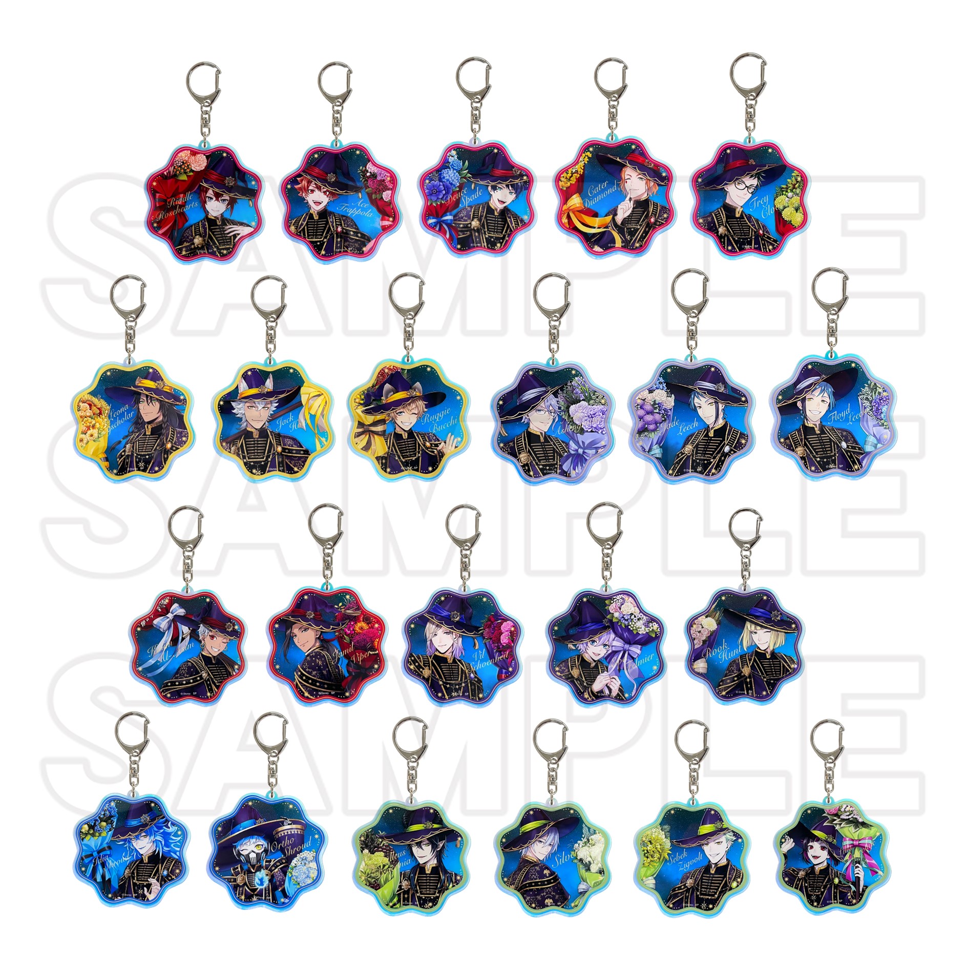 リドル・ローズハート、エース・トラッポラ、デュース・スペード、ケイト・ダイヤモンド、トレイ・クローバー、レオナ・キングスカラー、ジャック・ハウル、ラギー・ブッチ、アズール・アーシェングロット、ジェイド・リーチ、フロイド・リーチ、カリム・アルアジーム、ジャミル・バイパー、ヴィル・シェーンハイト、エペル・フェルミエ、ルーク・ハント、イデア・シュラウド、オルト・シュラウド、マレウス・ドラコニア、シルバー、セベク・ジグボルト、リリア・ヴァンルージュ