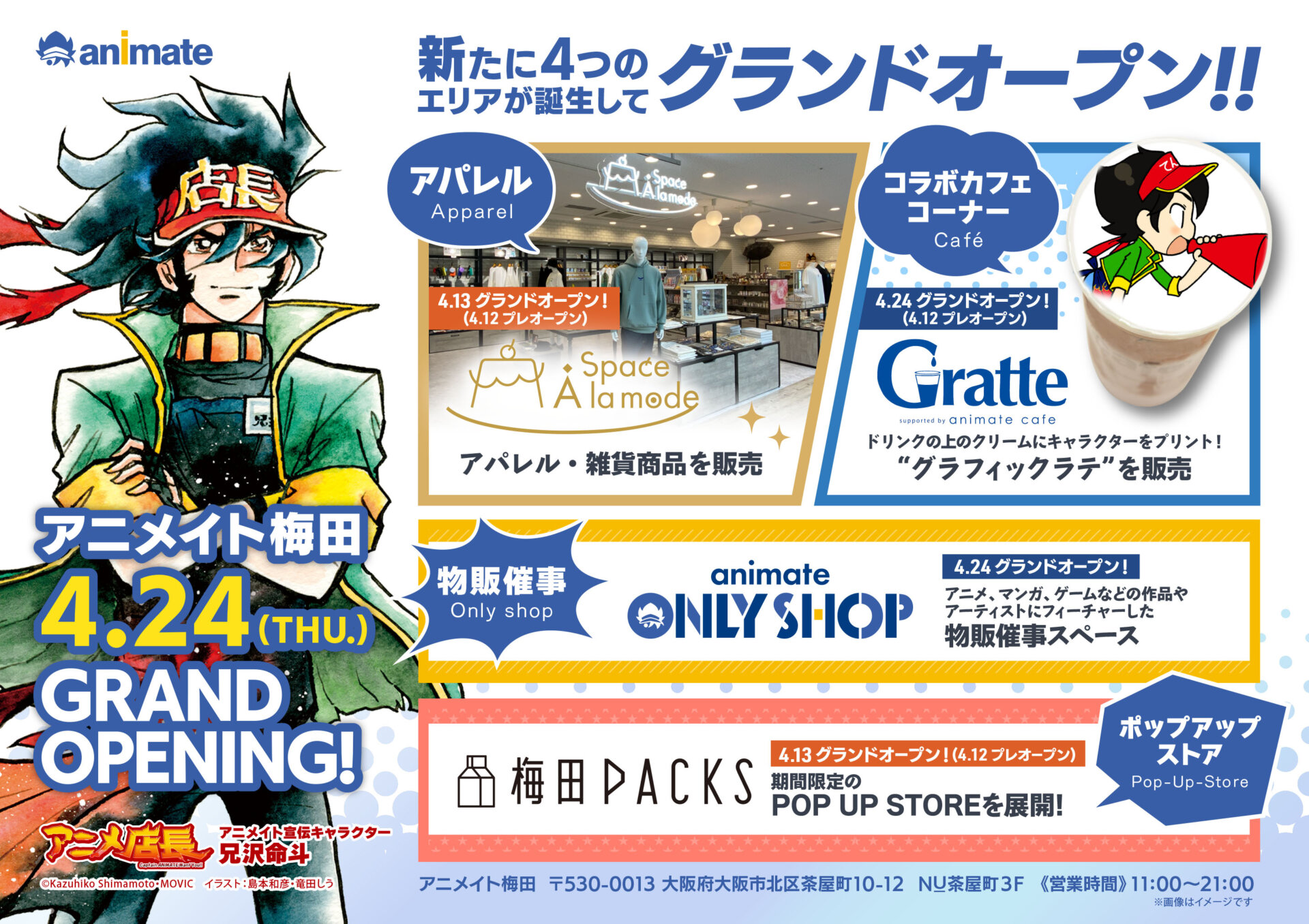 「Space A la mode」「アニメイトカフェグラッテ梅田」「animate ONLY SHOP」「梅田PACKS」