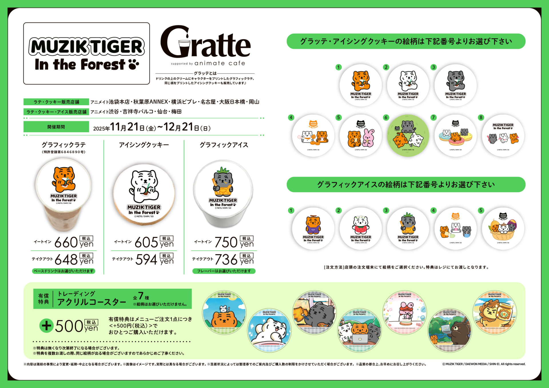 | ラテ・クッキー 販売店舗 | アニメイト池袋本店、秋葉原ANNEX、横浜ビブレ、名古屋、大阪日本橋、岡山 |