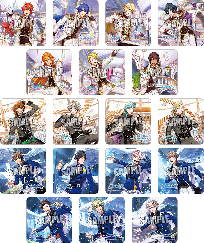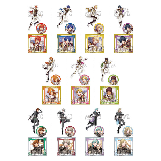 一十木音也、聖川真斗、四ノ宮那月、一ノ瀬トキヤ、神宮寺レン、来栖 翔、愛島セシル、寿 嶺二、黒崎蘭丸、美風 藍、カミュ、鳳 瑛一、皇 綺羅、帝 ナギ、鳳 瑛二、桐生院ヴァン、日向大和、天草シオン