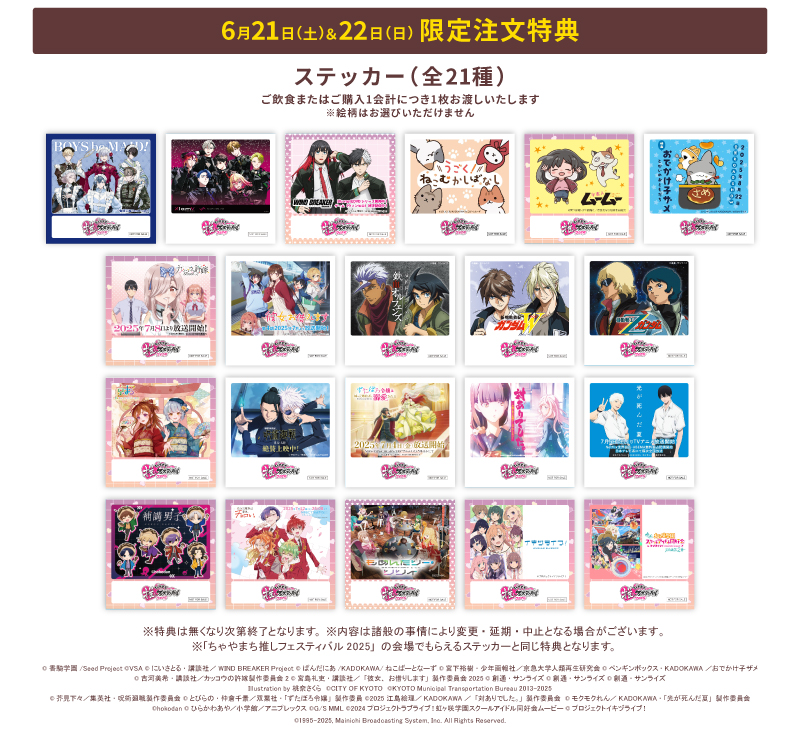 特典:ステッカー(全21種)※6月21日・22日のみ配布