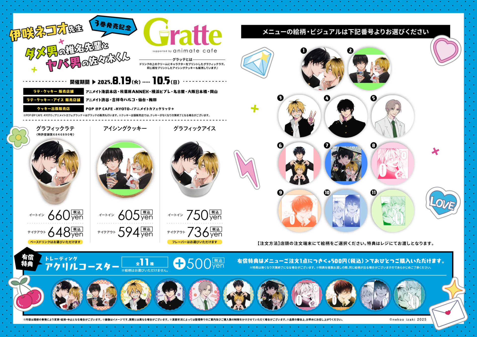 | ラテ・クッキー・アイス 販売店舗 | アニメイト渋谷、吉祥寺パルコ、仙台、梅田 |